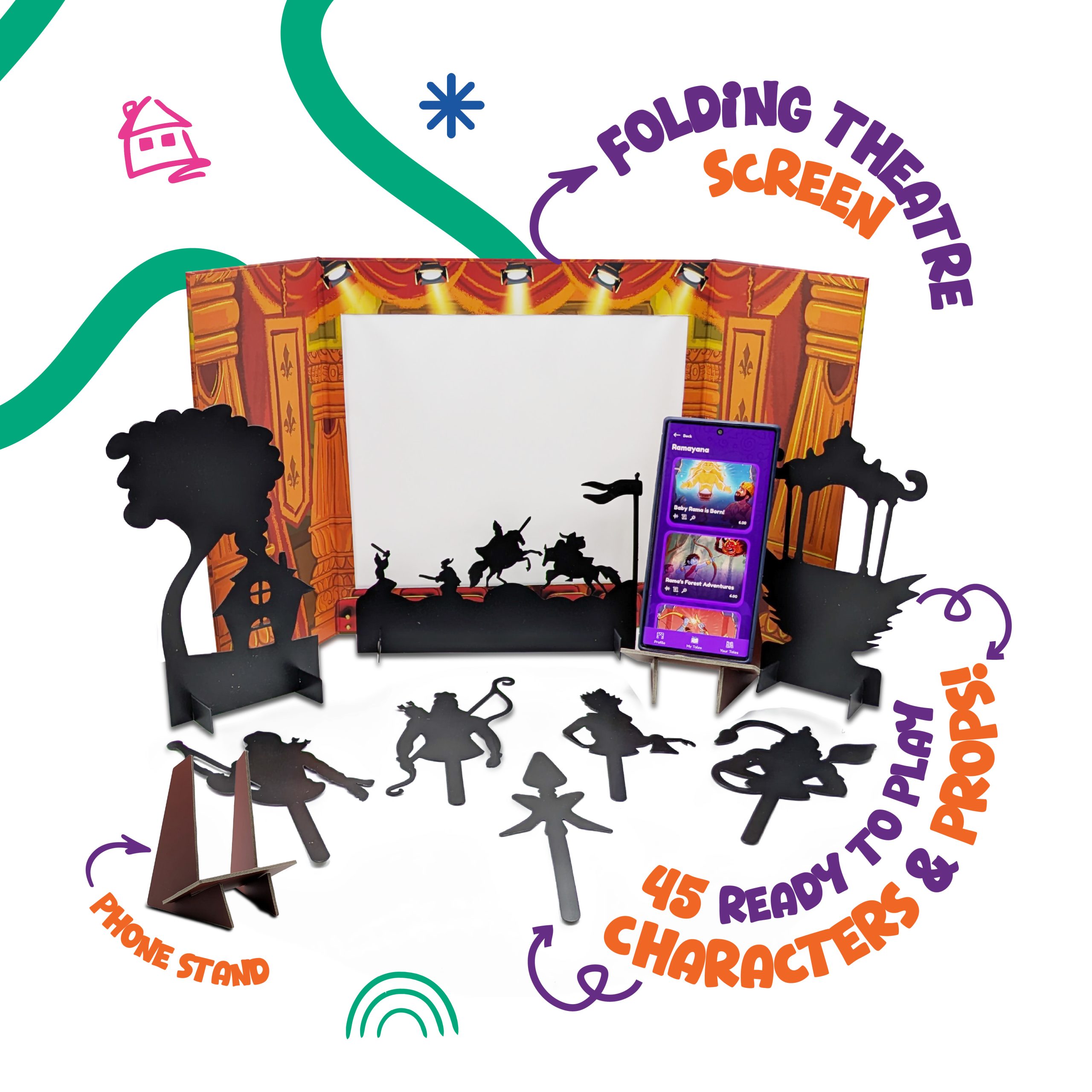 It’s an immersive way for children to connect with one of India’s greatest epics, transforming any room into a stage for adventure and discovery. The complete kit includes 45 props and characters, a folding theatre screen, and a phone stand to help you set the scene.