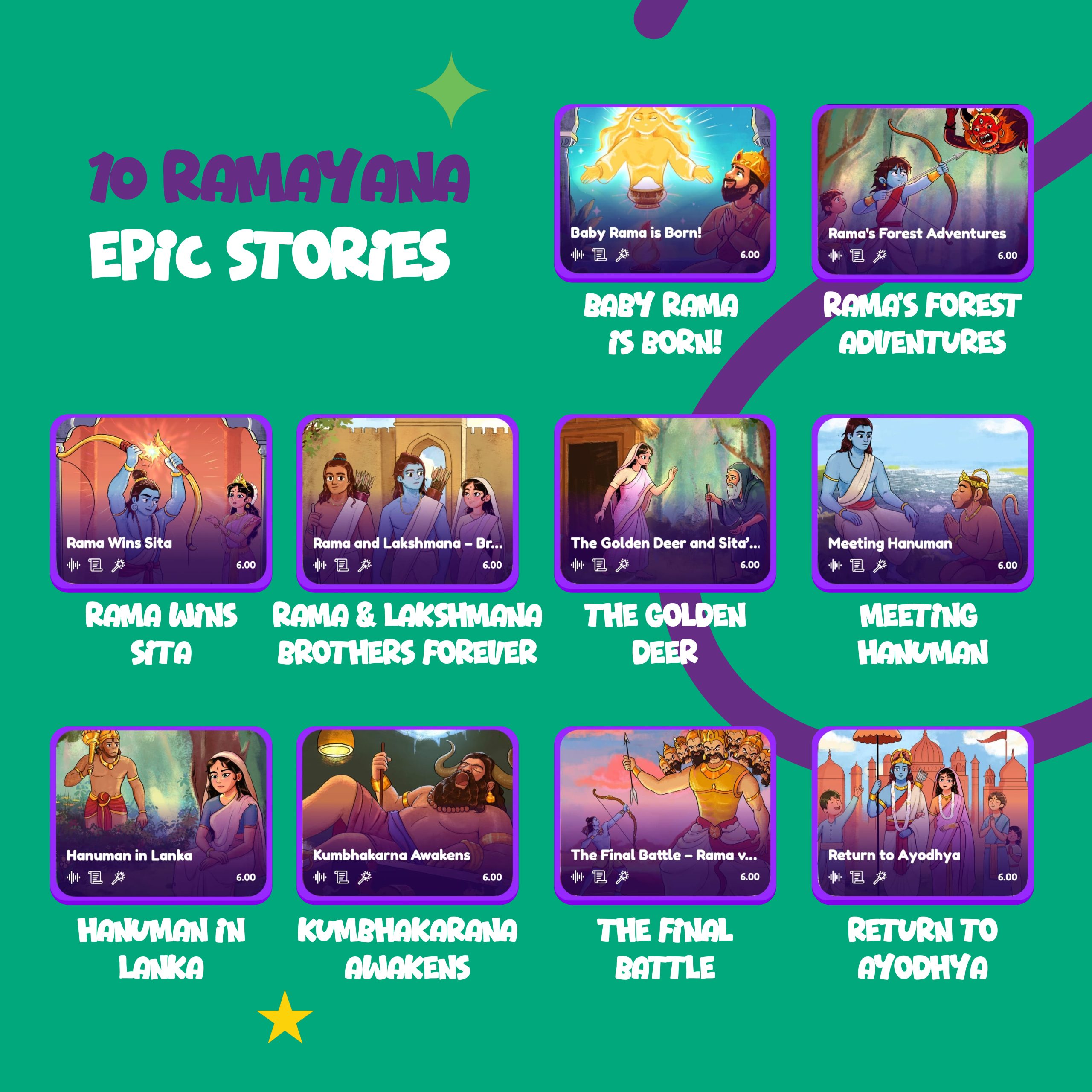 Includes Free Lifetime App: Access guided narration with 10 epic Ramayana stories for a richer learning experience. Simply scan the QR code—no in-app purchases are ever required.